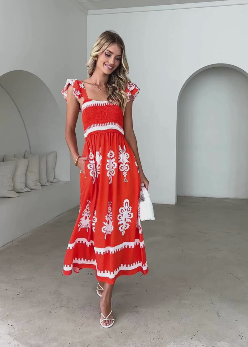 Make a bold statement in the Outlaw Maxi Dress, vibrant in a striking tangerine hue. For a standout daytime ensemble, style it with chic flat sandals and oversized sunglasses. Elevate your evening look with elegant heeled mules and a sophisticated clutch for a truly unforgettable presence.