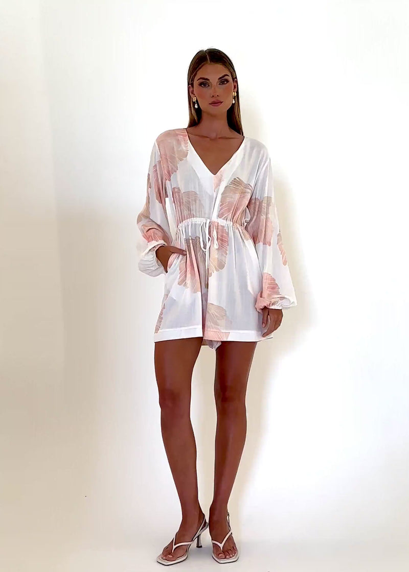 Cute and carefree, the Peregian Playsuit in Peach Shell pairs well with white trainers, dainty hoops, and a crossbody for weekend errands. Swap to wedges and a clutch for brunch.