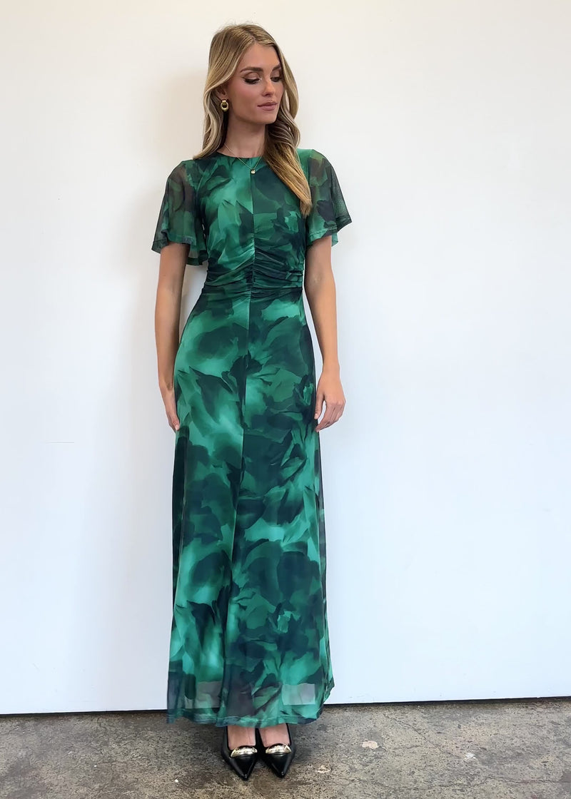A statement piece with an elegant touch, the Ricki Mesh Midi Dress in Emerald Watercolour is designed to captivate. Pair it with strappy heels and gold jewellery for an elevated evening ensemble, or style it with sleek boots and a leather jacket for a bold, modern edge.