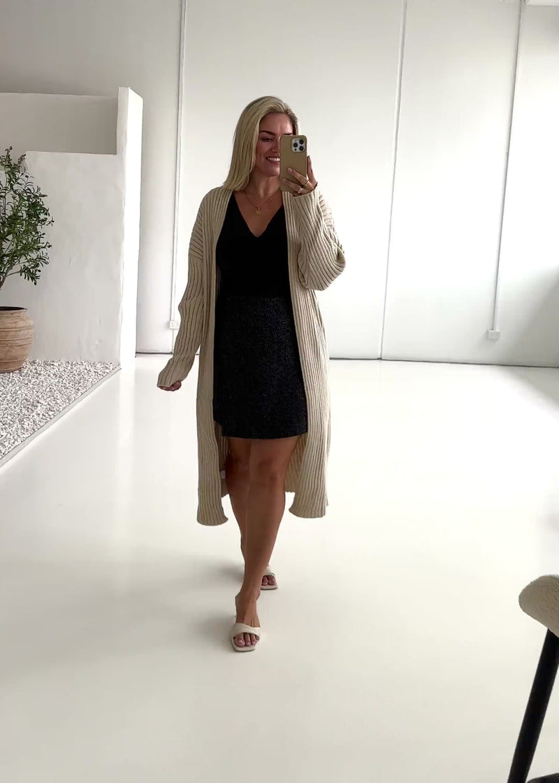 Keep it neutral and chic with the Ronan Cardigan in Cream. Whether worn over dresses or teamed with wide-leg jeans, it’s an effortless layering option. Style with loafers, a leather crossbody, and dainty gold studs.