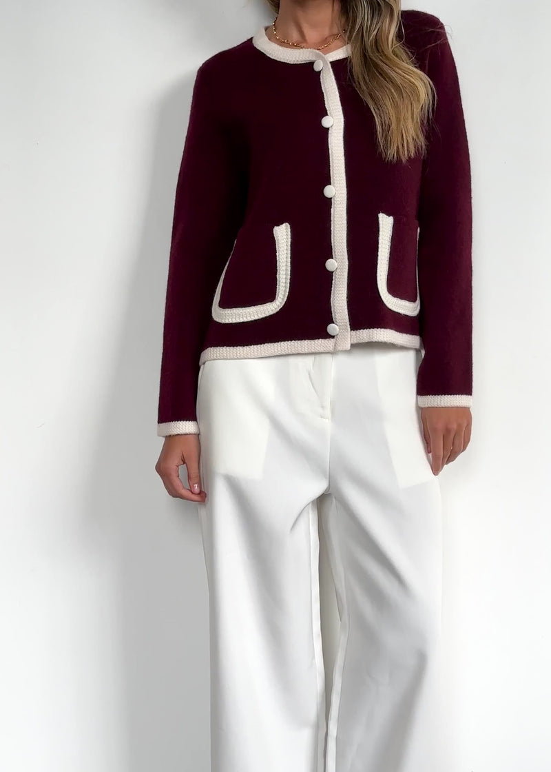 Add a cosy touch to your look with the Roselia Sweater in rich wine. Perfect for layering over slip dresses or pairing with high-waisted jeans and ankle boots, it’s an easy win for relaxed days or casual nights out. Throw on a crossbody bag and gold hoops to finish the look.