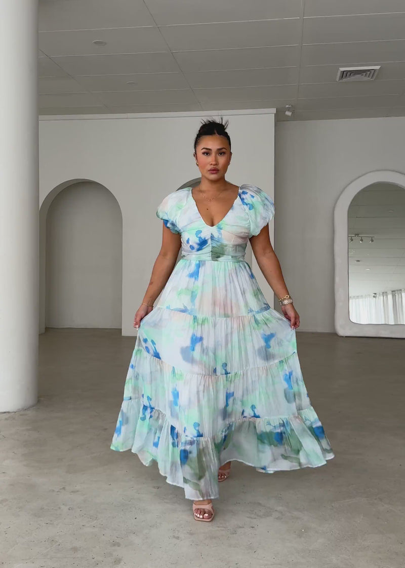 Flowing and feminine, the Sahnee Maxi Dress exudes effortless charm. Pair it with rose gold stud earrings, nude block heels, and a pastel clutch. A messy bun secured with a pearl-embellished hairpin will enhance the dress’s graceful appeal.