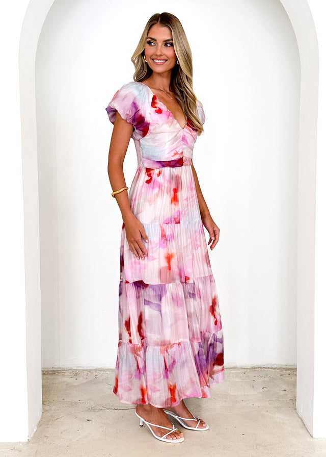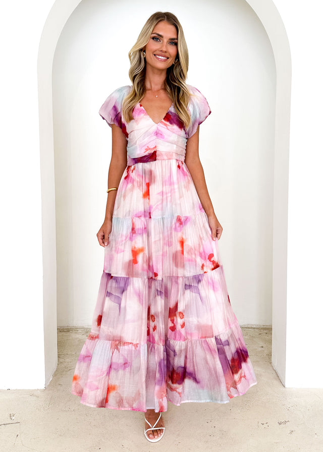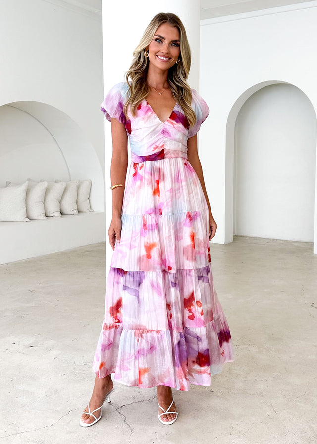 Make an entrance in the Sahnee Maxi Dress, perfect for summer soirées or elegant brunches. Style it with gold flat sandals, a layered bracelet, and soft waves tucked behind one ear with a pearl hairclip. Add a pastel clutch for a pop of colour.
