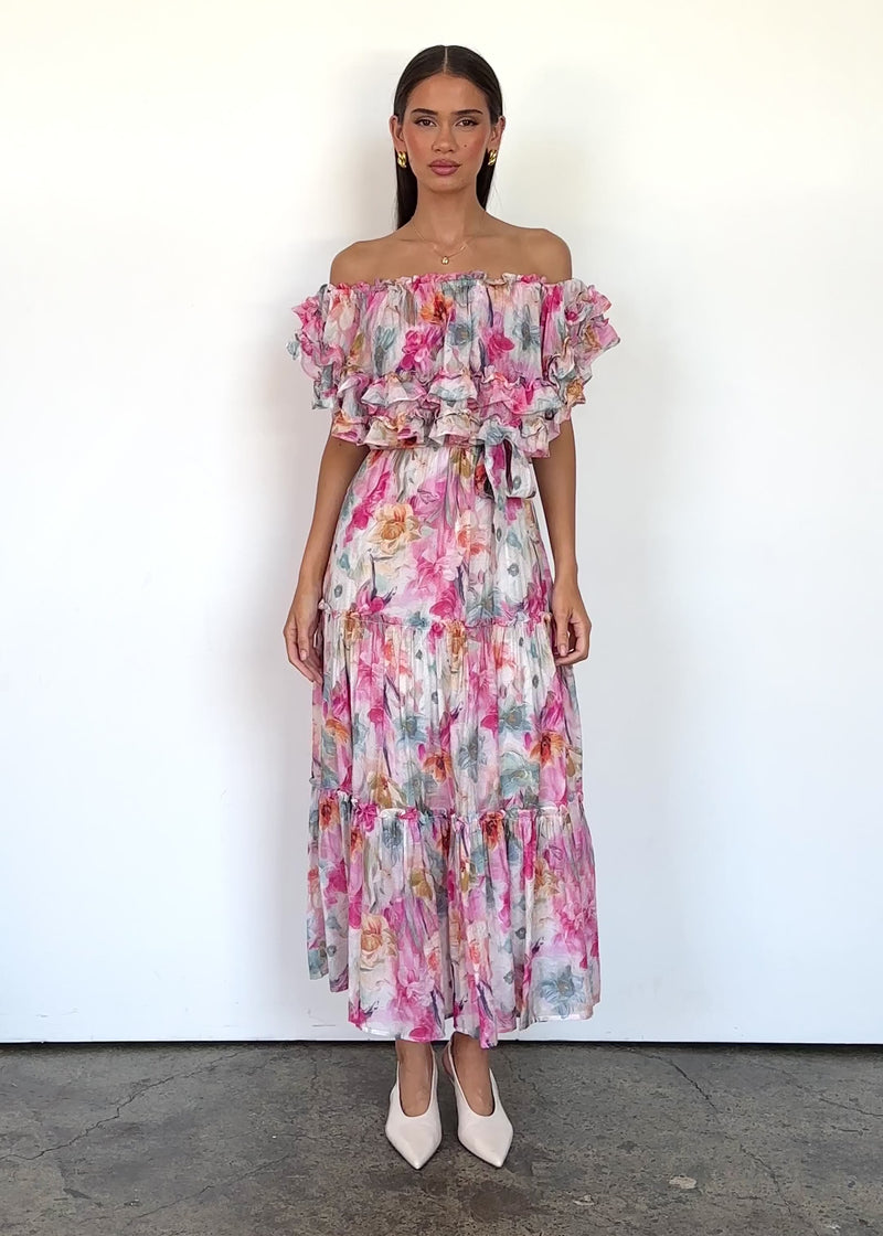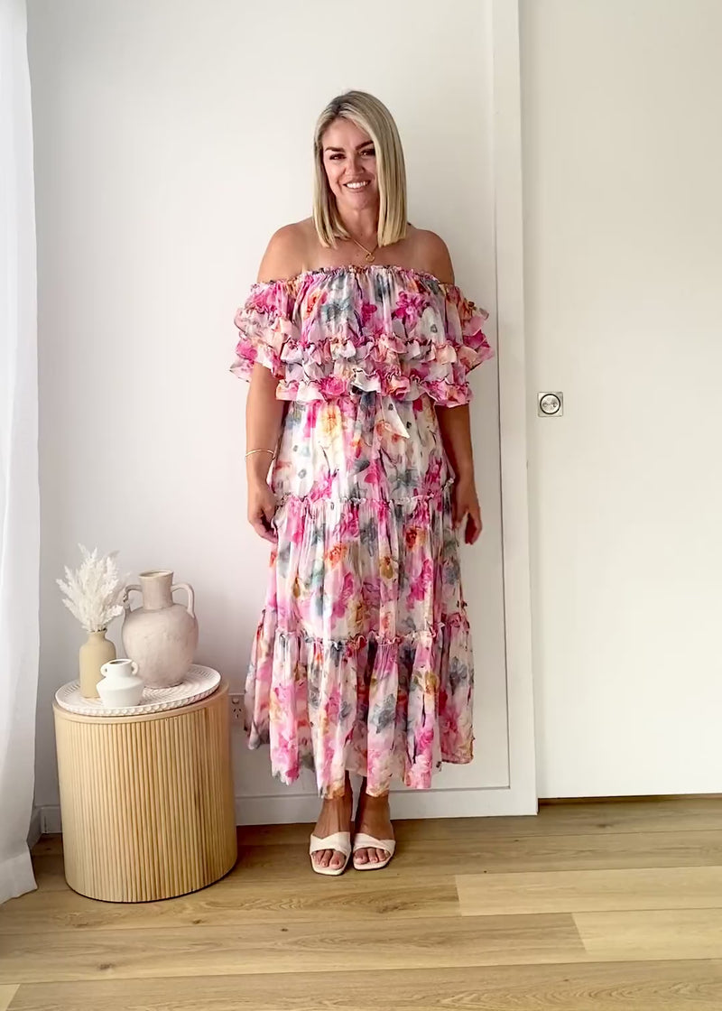 The Samara Maxi Dress in Pink Blooms is made for days under the sun. Its flowy shape and floral design pair perfectly with slides and a straw hat for an effortlessly chic finish.