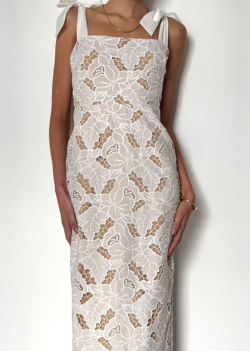 A blend of delicate embroidery and timeless design, the Serenity Embroidered Maxi Dress in Off White is made for effortless elegance. Whether for a special occasion or a formal event, this dress offers a flattering fit with intricate detailing. Pair it with soft waves and neutral heels for a polished finish.