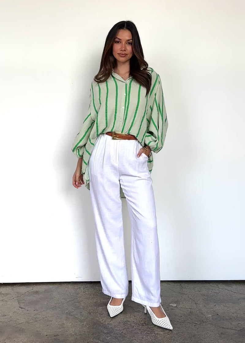 Fresh and playful, the Shelbi Shirt in apple stripe is your new pop of colour. Pair it with neutral trousers or a denim skirt for a casual yet cool outfit.