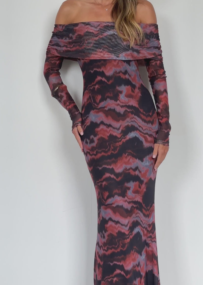 Sienna Mesh Off Shoulder Maxi Dress - Black Tie Dye