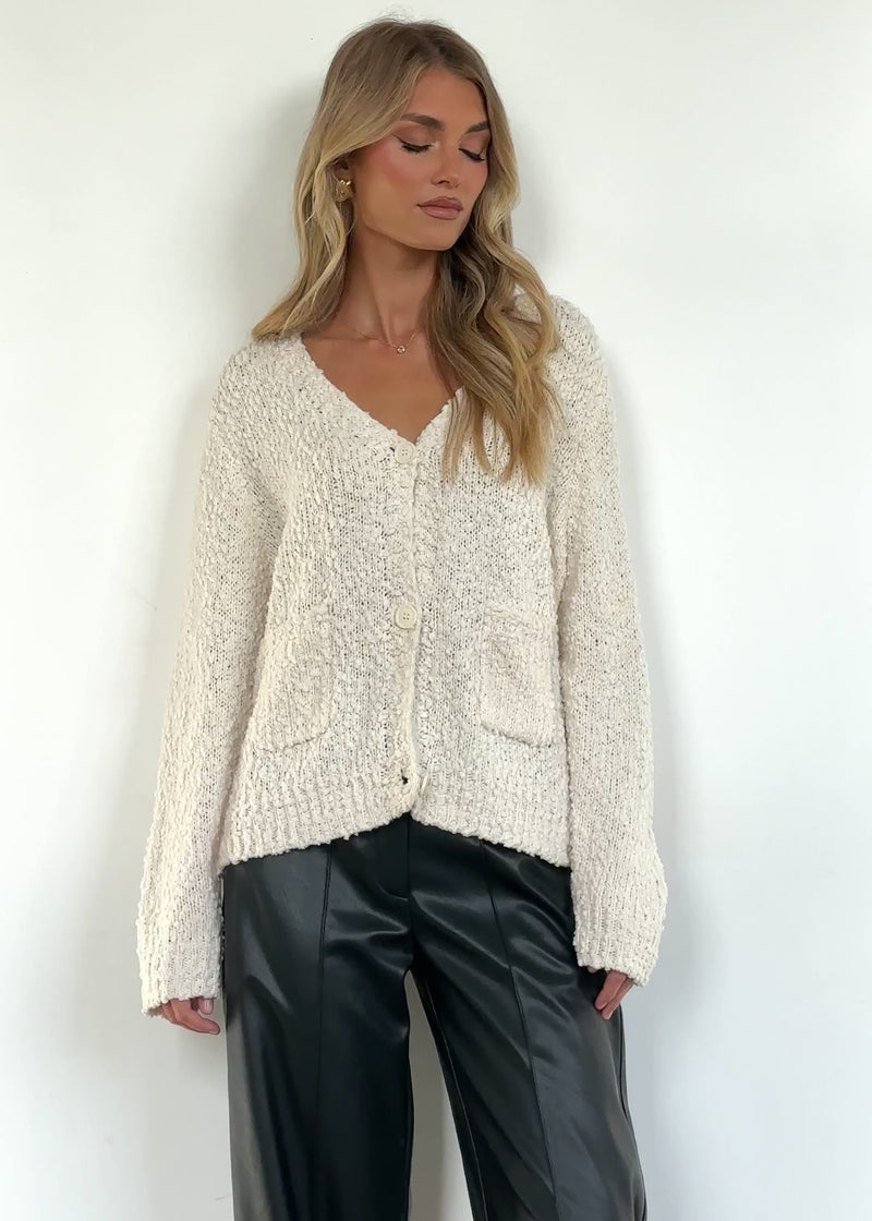 Layer up with the cosy-chic Skyfall Cardigan in Oat. Throw it over a midi dress or denim and a tank for an effortless everyday vibe. Pair with trainers, a crossbody bag, and your go-to sunglasses.