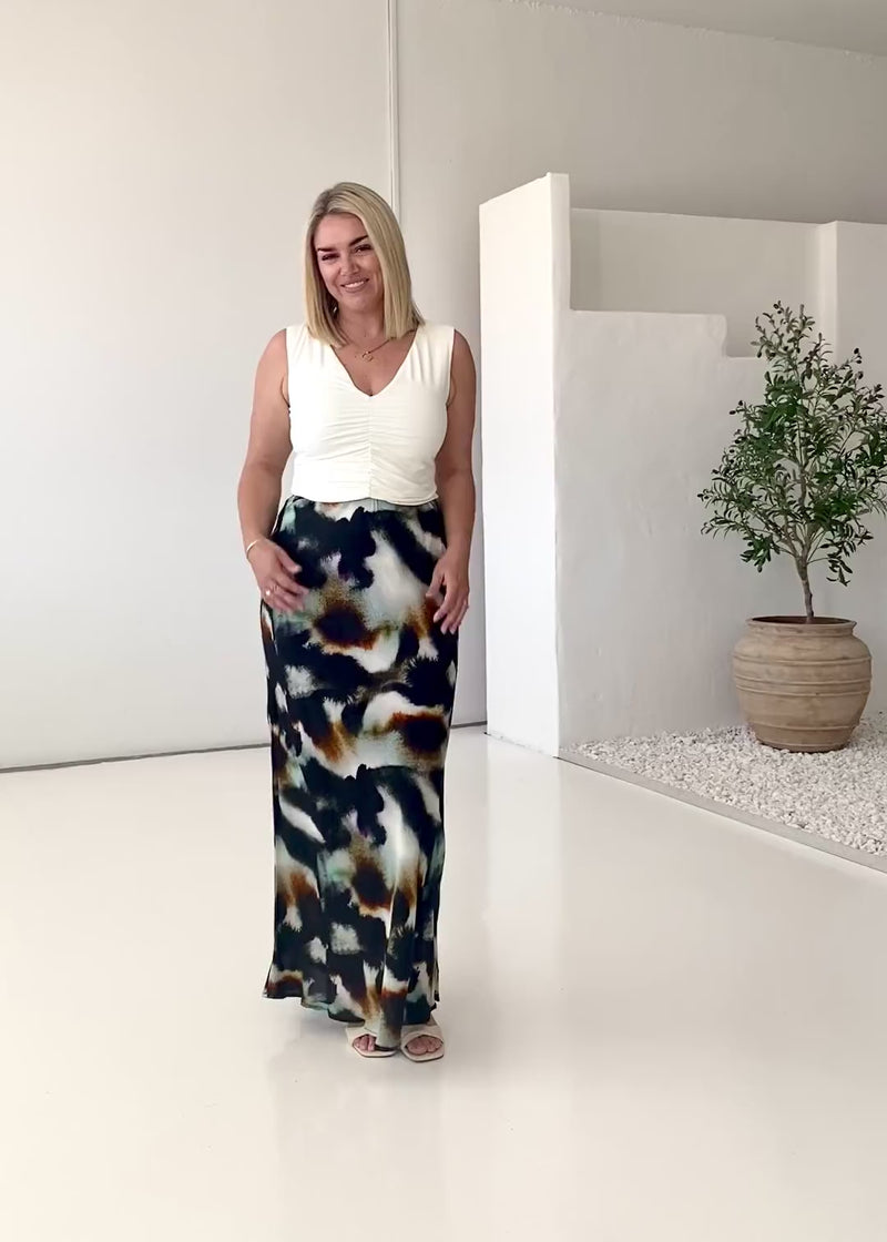Channel romantic vibes in the Soho Maxi Skirt with its Hesper blooms. Perfect for festivals or date nights, style with a cropped top and strappy sandals.