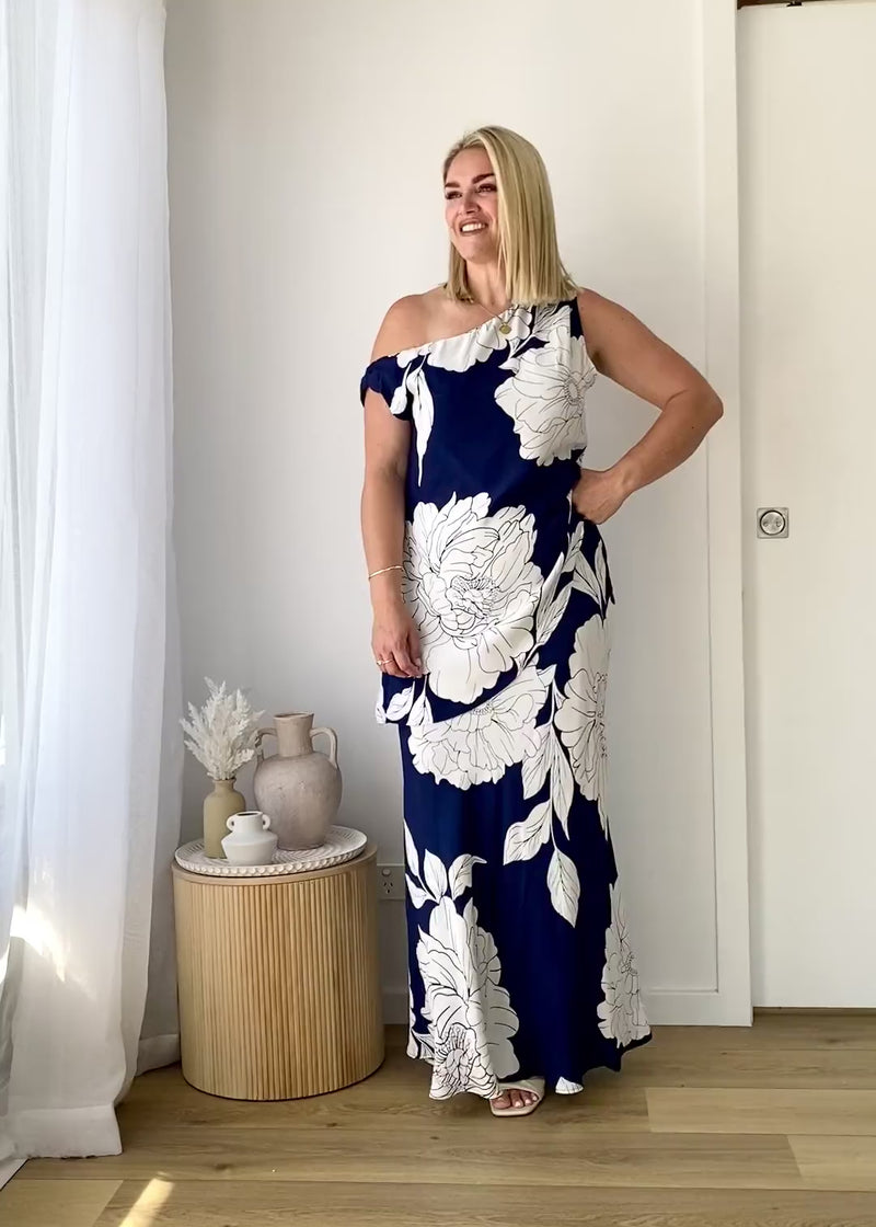 Playful yet elegant, the Solar Drop Shoulder Top - Navy Bloom is perfect with the matching maxi skirt for an all-in-one look or with denim shorts for laid-back styling. Ideal for sunny weekends and resort wear.
