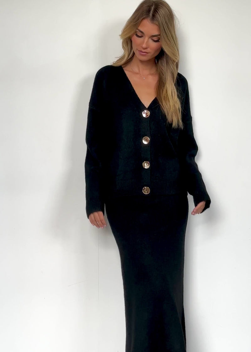 Easy to wear and endlessly versatile, the Stasia Knit Maxi Skirt in Black is perfect for dressing up or down. Pair it with the matching Stasia Sweater or tuck in a bodysuit and throw on boots for cooler days.