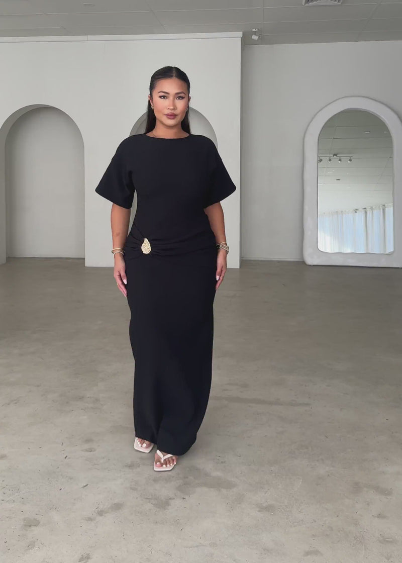 The Tallie Maxi Dress - Black is your ultimate go-to for chic minimalism. Pair with bold heels and statement jewellery for evenings, or keep it sleek with sandals and a shoulder bag.