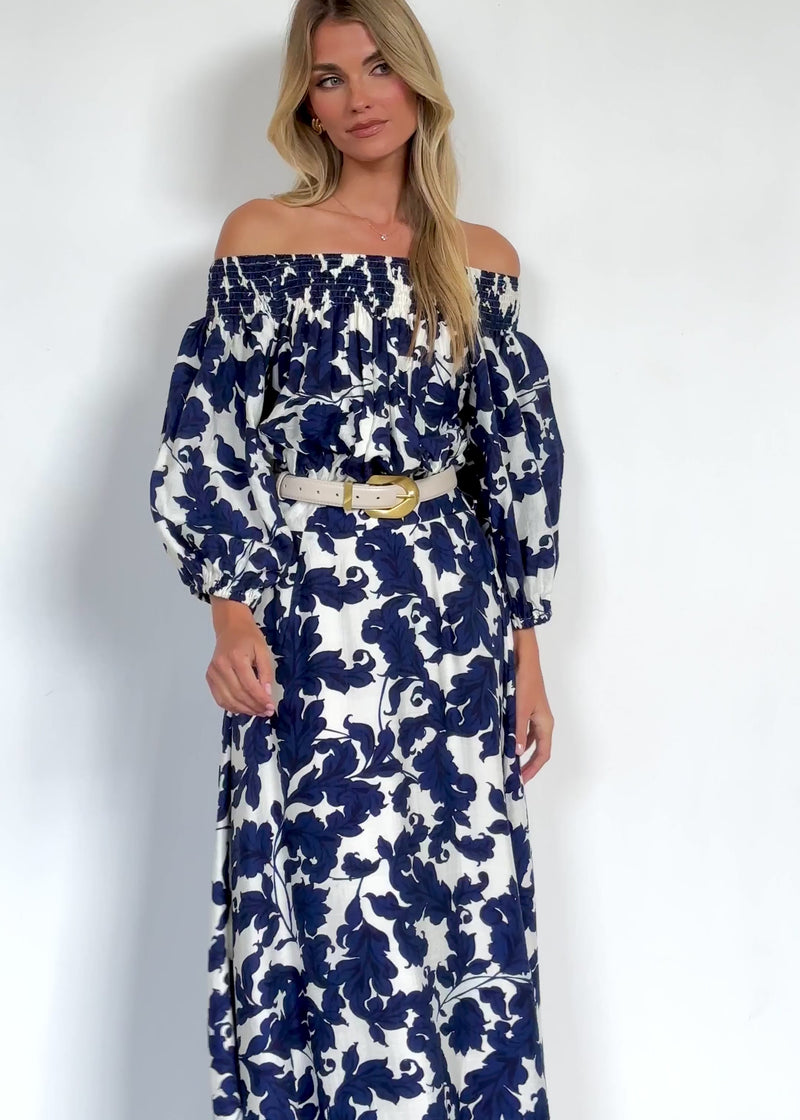 Sophistication meets comfort with the Talu Off Shoulder Midi Dress. Style it with soft curls, metallic sandals, and a crossbody bag. Complete the look with delicate stud earrings and a dainty necklace for effortless charm.