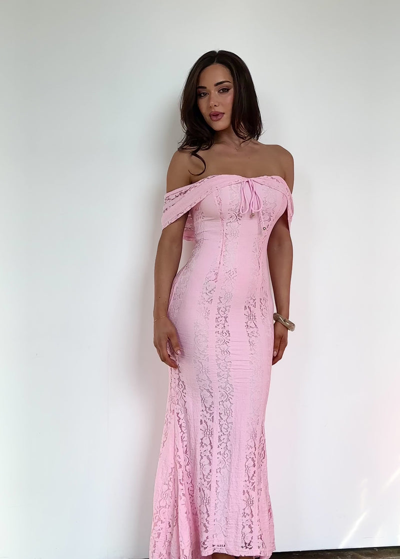 Discover the Tarin Off Shoulder Maxi Dress – Pink today.