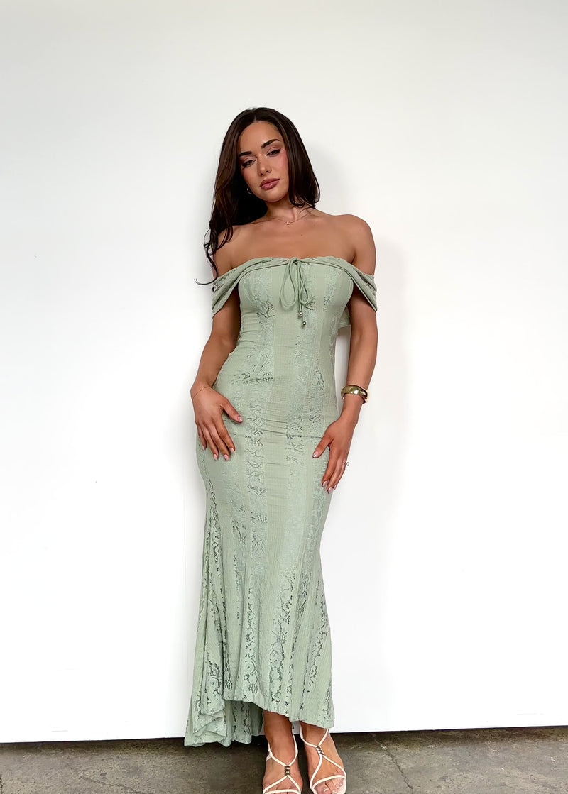 Make the Tarin Off Shoulder Maxi Dress – Sage yours today.