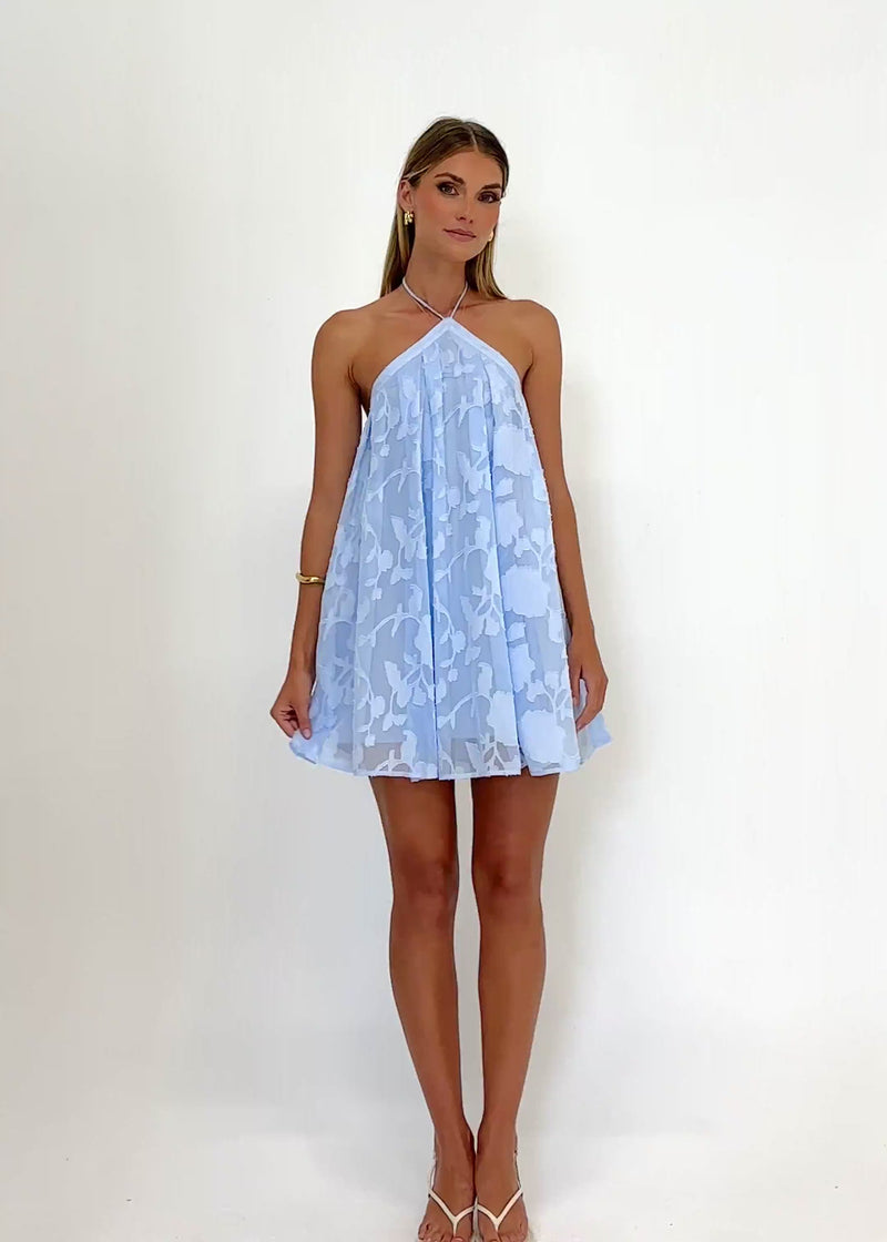 Step out in style wearing Teliyah Halter Dress - Baby Blue for your next semi-formal event. A soft pastel shade and elegant halter design offer a polished finish for sunset cocktails or holiday dinners. Style this piece with silver block heels and a shimmering petite handbag for a refined ensemble.