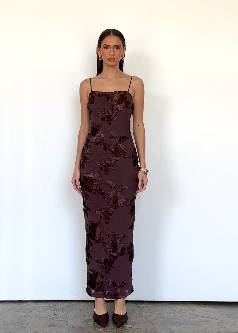 The Teneile Mesh Maxi Dress is all about understated allure. With its espresso tone and sheer textured finish, it’s perfect for evening plans or cocktail nights. Style it with gold jewellery, heeled mules, and a mini clutch to complete the luxe vibe.