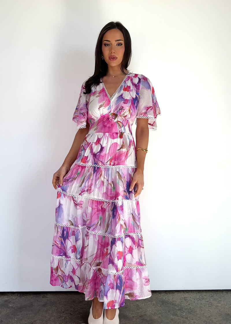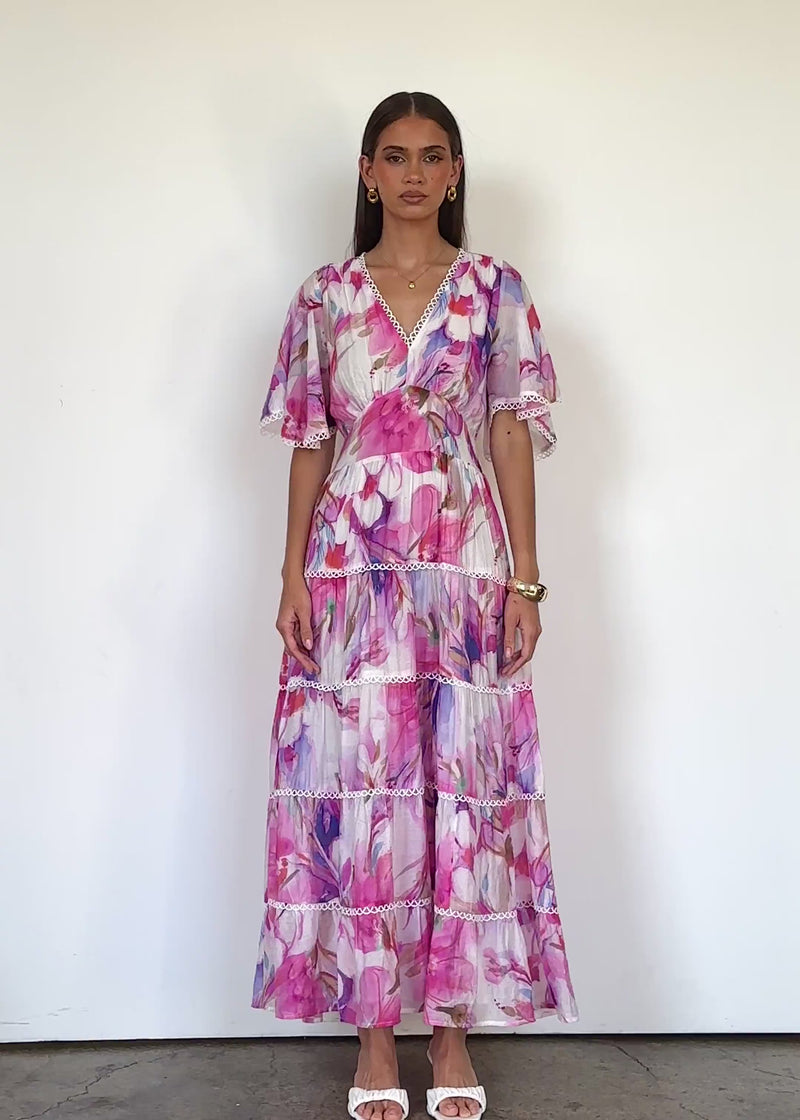 Floaty and feminine, the Tillie Maxi Dress - Pink Bouquet pairs beautifully with strappy heels and gold earrings for an event or with slides and a raffia bag for relaxed days.