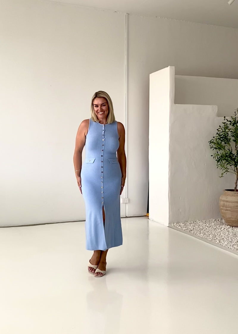 - Features: Gold buttons, Only top three buttons are functional, Faux Pockets, Front split