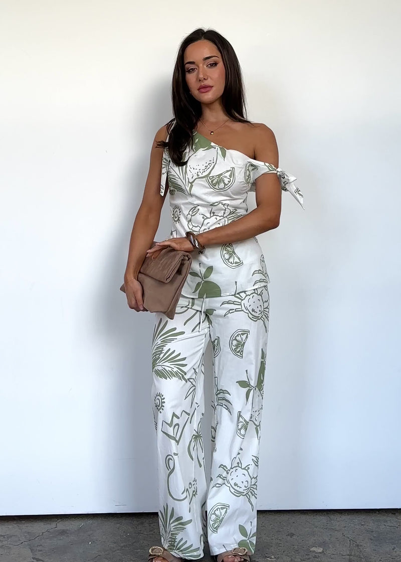 The Vacay Set in sage abstract is made for sun-soaked escapes and poolside moments. Pair it with slides, a straw tote, and oversized sunglasses for the ultimate getaway look.
