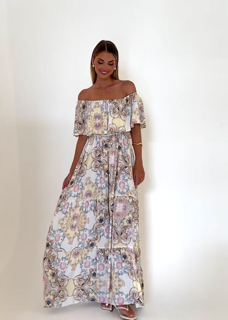 Romantic and regal, the Verah Maxi in Versailles suits celebrations, long lunches, and soirées. Wear with heeled sandals, a clutch, and subtle sparkle.