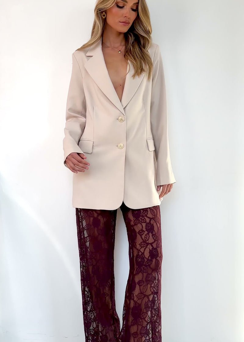 The Wynter Lace Pants in Burgundy are a bold yet feminine pick. Style them with a fitted knit top and pointed heels for date night, or go for a tone-on-tone look with a matching blouse and minimal gold jewellery.